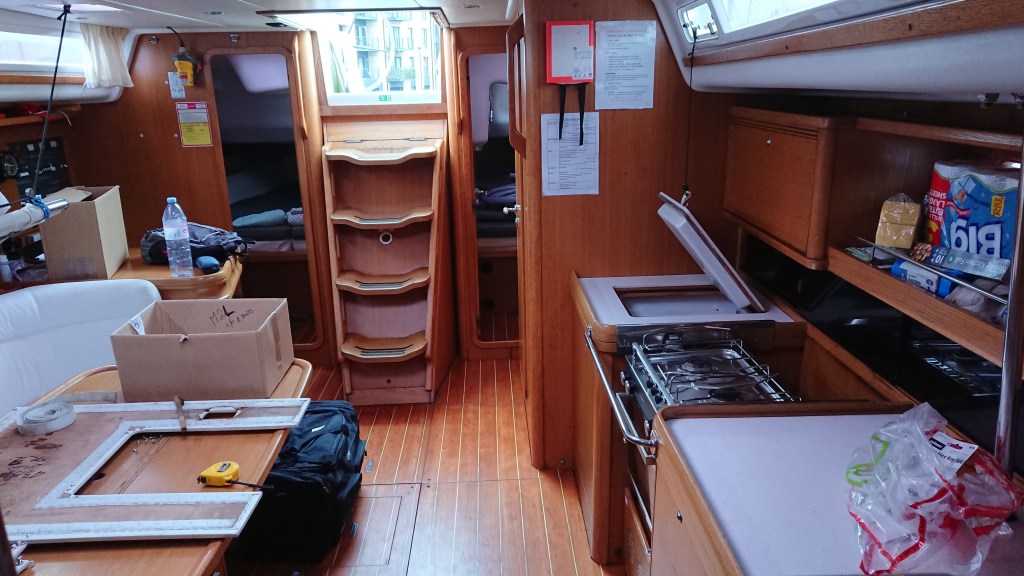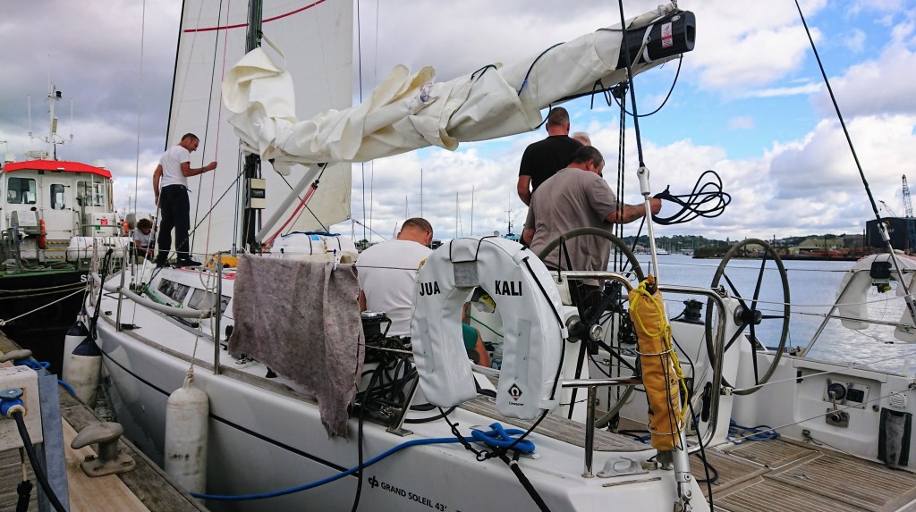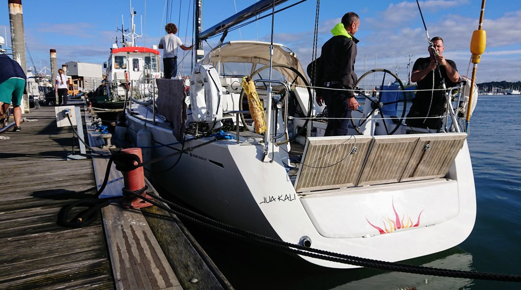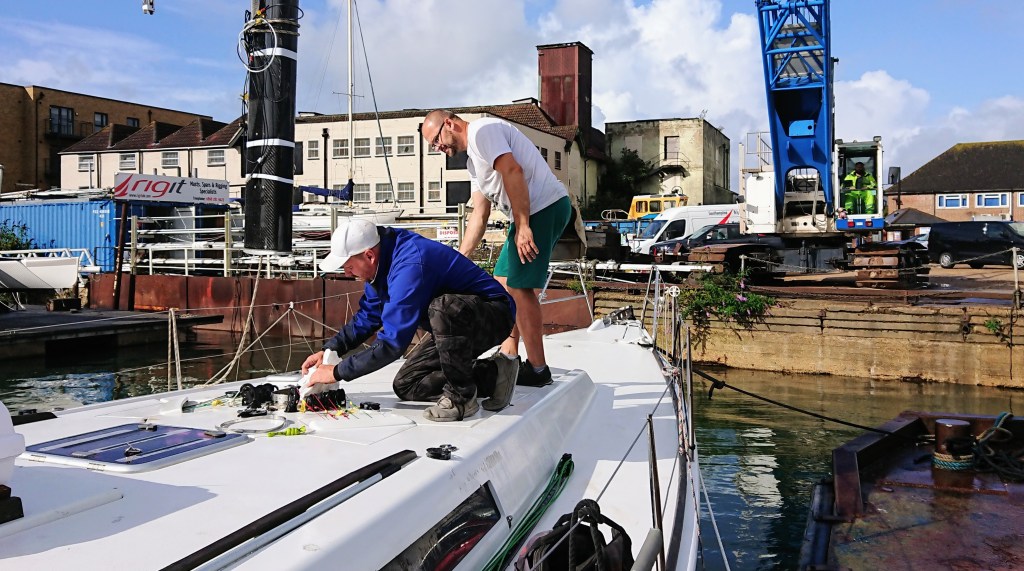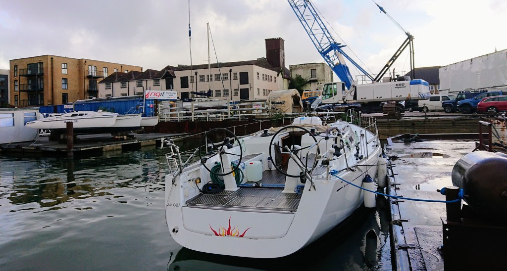 The days flew by, we got all the electrical stuff done, installed the life raft on the deck, and we even managed to squeeze one more into the lazarette just in case. Sails are sorted and we found the missing battens. Attached the bathing platform, oh, and don’t even get me started on the new thru hulls and sea cocks that were put in. With the yacht back in the water and the mast up, Jau Kali got moored at Itchen Marina. Which, to be honest, doesn’t have the best facilities around. But hey, we can deal with it.