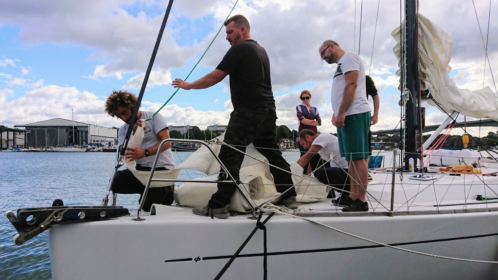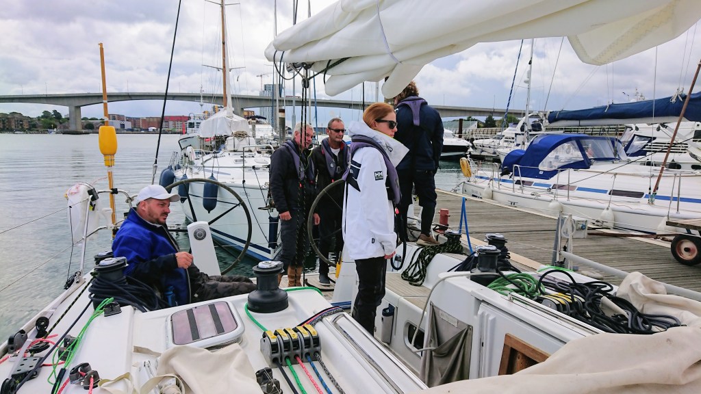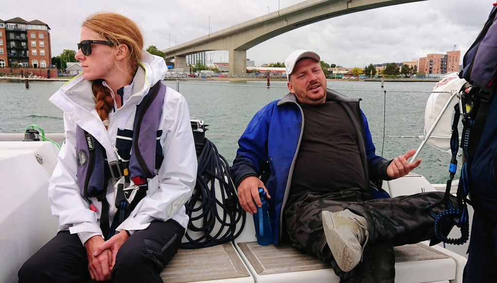 We moved onboard and started prepping for some trial runs in the River Itchen and Southampton Waters. And let me tell you, it wasn’t a walk in the park. This lady doesn’t come with all the fancy gadgets like a furling head sail or furling main. She has a manual reefing system with rams horns, no autopilot, or chart plotter. No, we’re going old school here, with lots of shouting, sheet and halyard pulling and 24/7 watches!