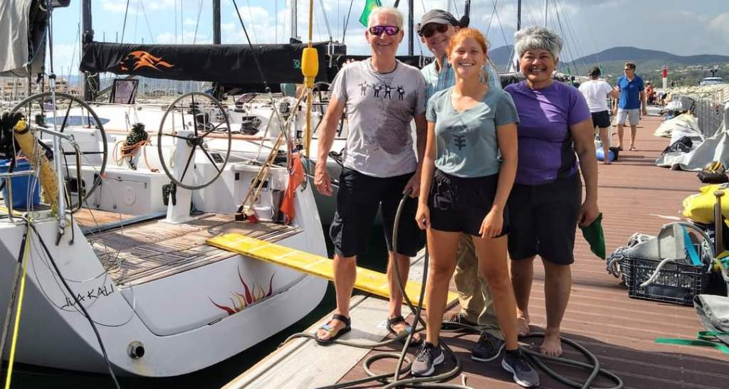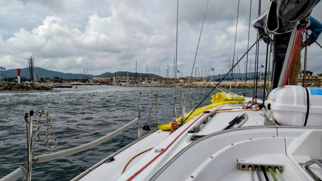 Finally, we docked among the other boats in our class at Marines de Cogolin. We settled in, checked out the facilities, had a debrief, and made plans to grab some grub and hit the hay in the garden shed for a well-deserved rest…