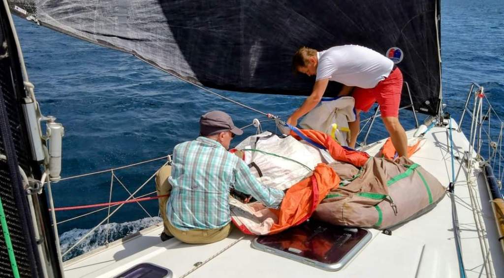 At night, we took care of various maintenance tasks like fixing sails and replacing the Windex at the tippy top of the mast. Anna, who we playfully named Mast Monkey, took on the Windex replacement duty and even managed to give the carbon mast a good cleaning using her thighs.. talk about multi-tasking!