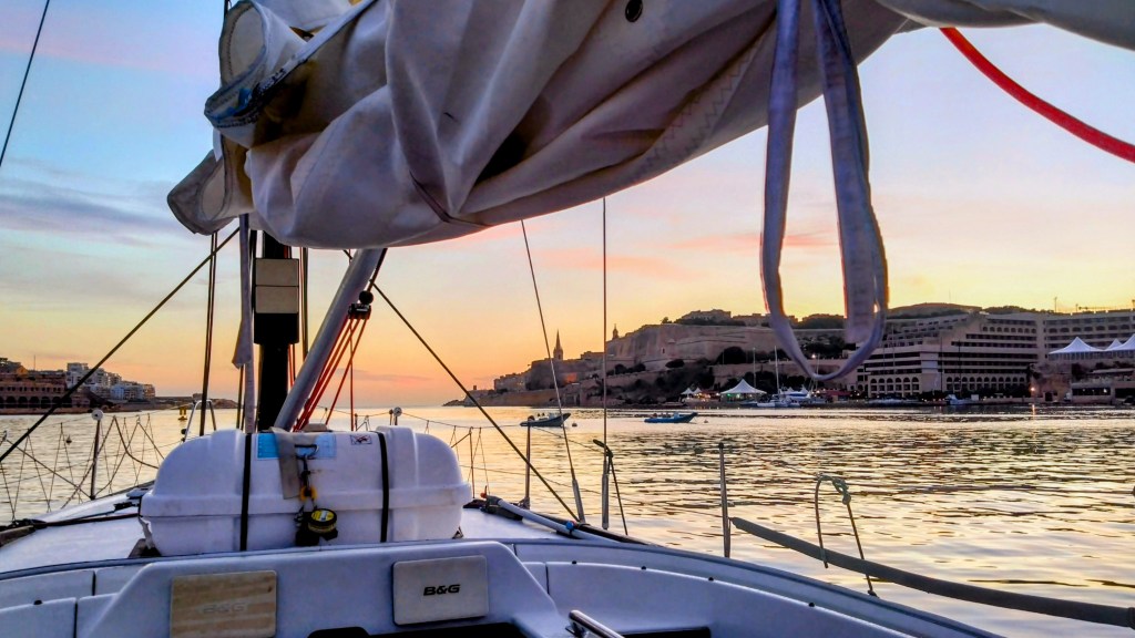 On Thursday 26th October, I get this invite to join the Malta Lavagna Miles Building sail via the WhatsApp Group from Daria at Race your Dreams. Turns out there will be 5 of us on board, with the other 4 already at the Royal Malta Yacht Club, Ta’ Xbiex, converting Jua Kali from racing mode to cruising mode and getting everything ready for the trip. And the Skipper, Francesco, has already set the “no booze on board” rule for the entire journey. I’ll be joining them on Sunday.