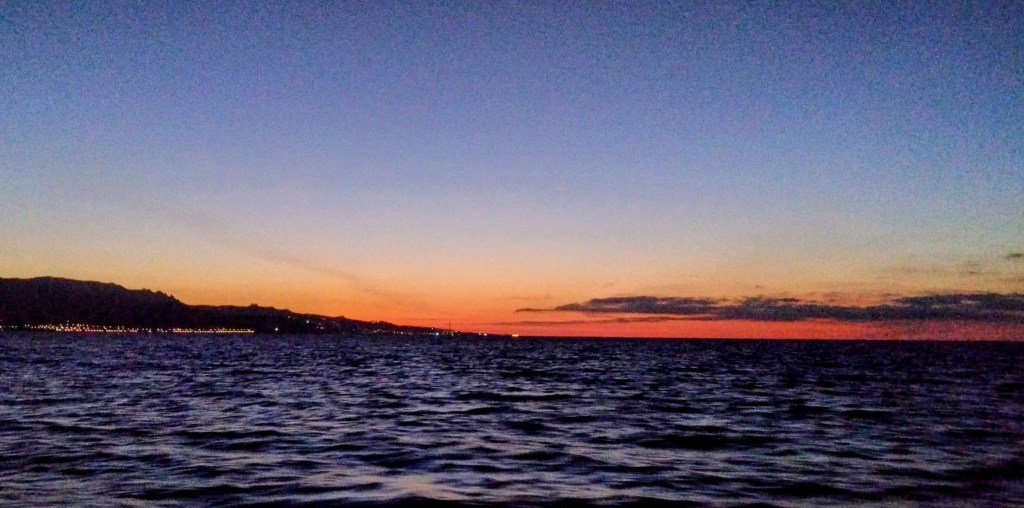 Supper went down well and everyone managed to get a reasonable amount of sleep. It was a quiet night as we motor sailed north along the east coast of Sicily. The night lights from the City of Catania and other smaller Sicilian towns along the coast were clearly visible and very beautiful. I was surprised at how little shipping there was as we only came into to contact with a few other commercial ships entering the Strait or heading west towards Greece. All in all very relaxing so far…