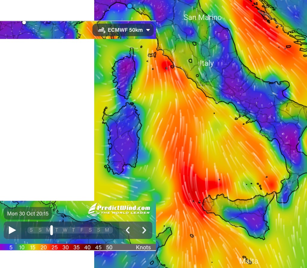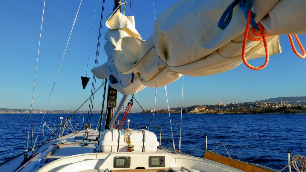 At 07:57, we untied the lines and started our journey out of Malta, passing by Valletta and the Dragutt Shoal, and set our course toward Sicily and the Strait of Messina. The wind was barely there, so we mostly relied on the motor to sail, knowing that we had to cross the Strait within two days before the bad weather catches us.