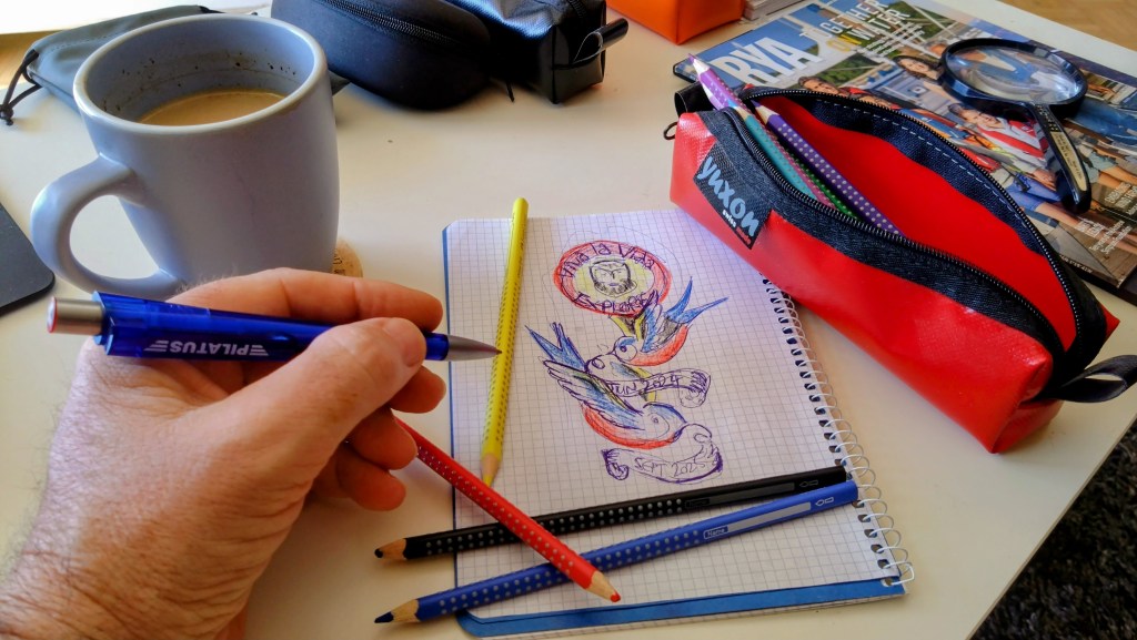 Sure, let’s add some cool tattoos to the mix! How about a badass Viva la Vida, Explore logo with a couple of 5,000 nautical mile swallows flying around? We’ll even have them carrying banners with each 5K completion date. Fun fact: Did you know that the earth’s circumference is around 21,639 nautical miles? That’s like 4.16 swallows! I’ll keep working on this before I head out to get inked. Stay tuned! 🤘